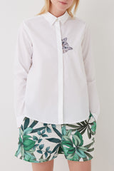 Peek-a-boo kitty lightens the mood anywhere you go in this crisp cotton poplin shirt that won't ever have time to migrate to the back of your closet.